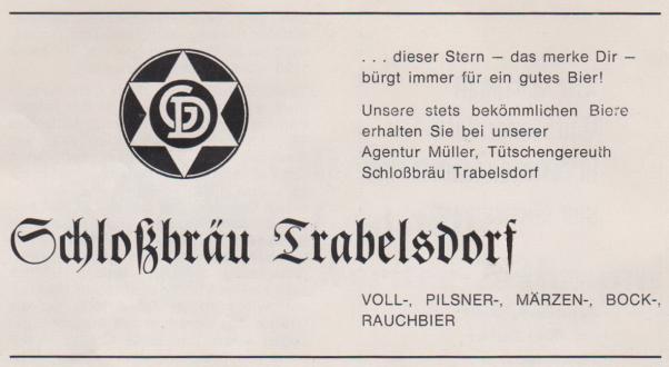 - bis 1965 Schloßbräu und Mälzerei Trabelsdorf, Inh. Karl German Dauer & Johanna Nieser